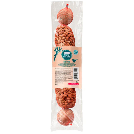 Festival de Versele-Laga combina 3 bolas de sebo y 2 redes de cacahuetes en un práctico pack de 615 g. Un aporte energético esencial para aves silvestres durante el invierno, con grasas, cereales, semillas y frutos secos de alta calidad.