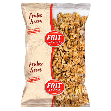 Frit Ravich Nueces Grano Chile 1 kg, frutos secos de calidad premium, ricos en omega 3, proteínas y antioxidantes. Perfectas como snack saludable o para añadir a ensaladas, repostería y recetas gourmet. Un formato ahorro ideal para disfrutar de todo su sabor y beneficios nutricionales.