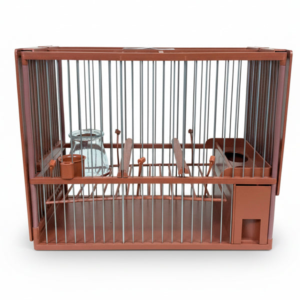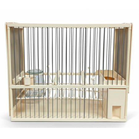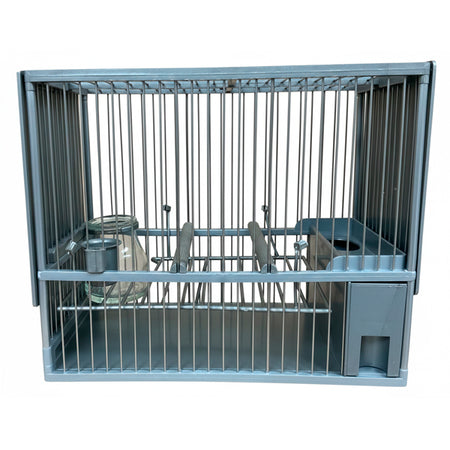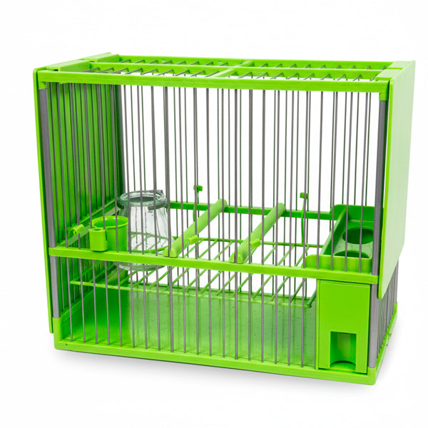 Con una estructura resistente de acero inoxidable y acabados pensados para el bienestar del ave, esta jaula es perfecta tanto para el uso diario como para competición.