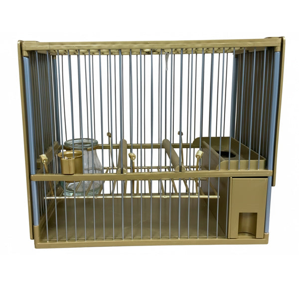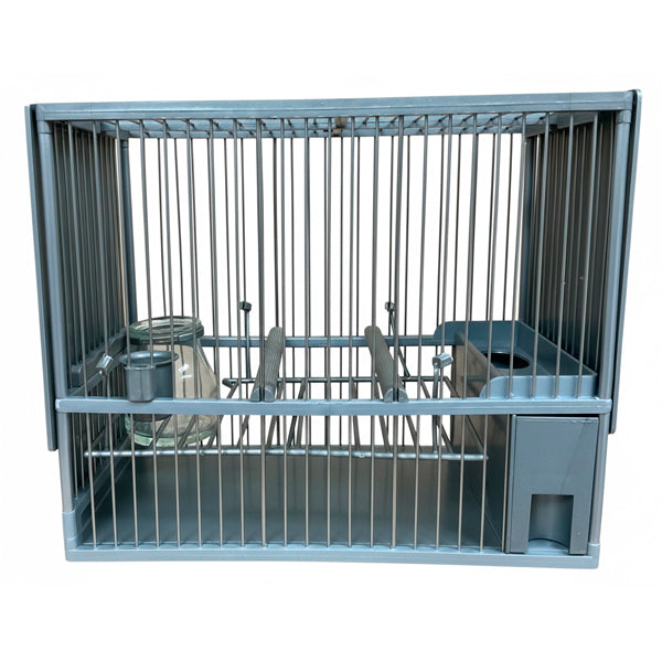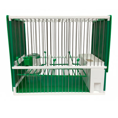 Jaula C2 en acero inoxidable para jilgueros y silvestres. Completa con accesorios. Ideal para cría, transporte y concursos.