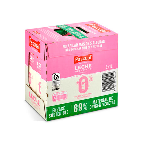 Leche Pascual Clásica Desnatada 6x1L es perfecta para quienes buscan una leche sin grasa, rica en calcio, proteínas y vitaminas. Ideal para dietas saludables sin renunciar al sabor de siempre. Apta para toda la familia, elaborada bajo estándares de Bienestar Animal y presentada en brik sostenible.