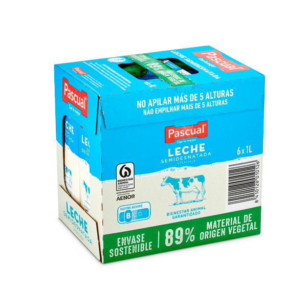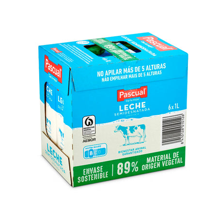 Leche Pascual Clásica Semidesnatada 1L – Pack de 6 – Sabor Equilibrado y Nutrición Completa