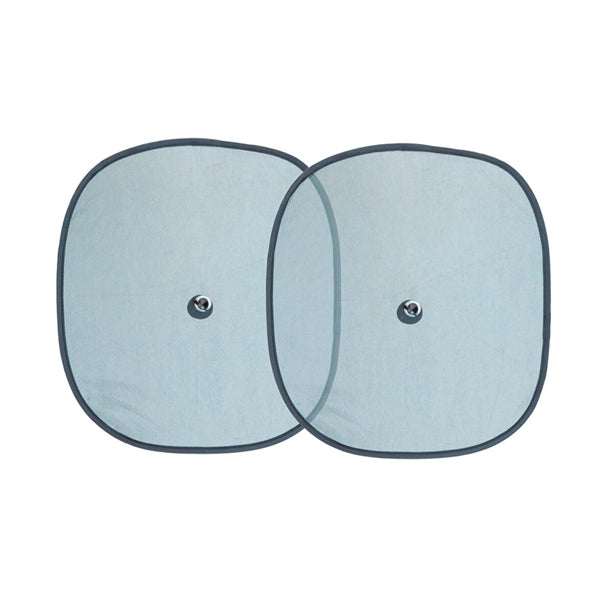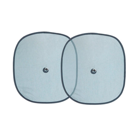 Set de 2 parasoles laterales para coche de 44x38 cm, fabricados en malla de nylon con protección UV. Se fijan fácilmente con ventosas, bloquean el sol y reducen reflejos para mayor comodidad de los pasajeros, especialmente de los niños. Prácticos, plegables y resistentes, ideales para viajes en familia.