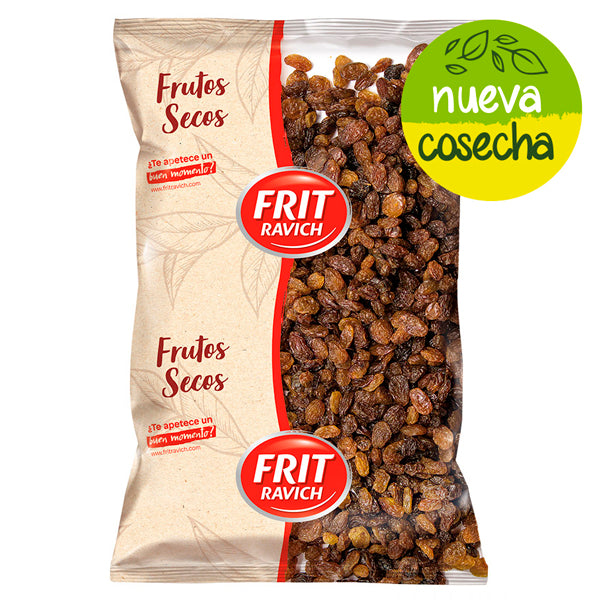 Pasas sultanas de Turquía Frit Ravich, dulces y naturales. Ricas en fibra, hierro, calcio y potasio. Formato 1 kg ideal para repostería, cereales o como snack saludable.