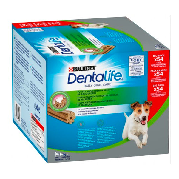 Purina Dentalife Small ofrece cuidado dental eficaz para perros de hasta 12 kg. Su textura porosa reduce placa y sarro, mejora el aliento y favorece encías sanas. Un stick al día convierte la higiene bucal en un momento sabroso y saludable.