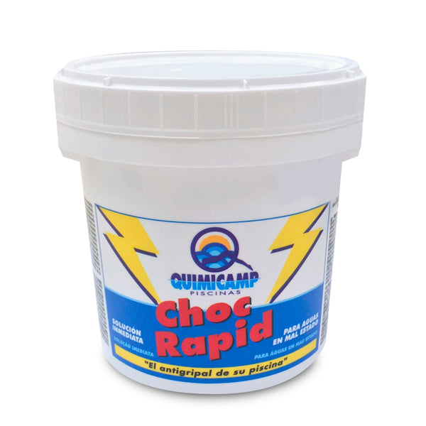 Quimicamp Choc Rapid es un granulado de acción rápida diseñado para devolver el agua de tu piscina a un estado cristalino y saludable en poco tiempo. Su fórmula potente actúa directamente contra algas, bacterias, hongos y virus, solucionando el problema de aguas verdes o turbias de forma eficaz.