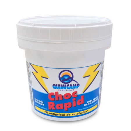 Quimicamp Choc Rapid Granulado es un tratamiento rápido y eficaz para aguas verdes o turbias en piscinas. Su fórmula elimina algas, bacterias, hongos y virus, devolviendo la claridad al agua en pocas horas. Presentación en envase de 500 g, fácil de aplicar y sin residuos. Ideal para mantener tu piscina limpia y segura.