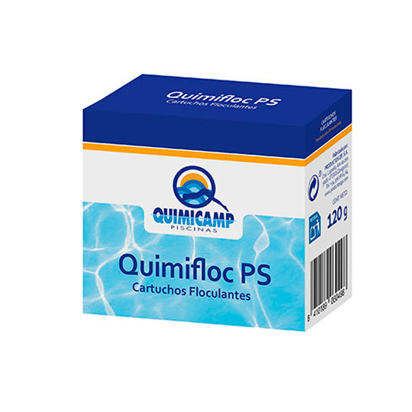 Quimicamp Quimifloc PS son cartuchos floculantes para filtros de arena que mejoran la calidad del agua de la piscina, eliminando impurezas y favoreciendo la acción del cloro. Con su uso, se consigue un efecto cristal, manteniendo el agua limpia, transparente y lista para disfrutar. No apto para filtros de cartucho ni diatomeas.