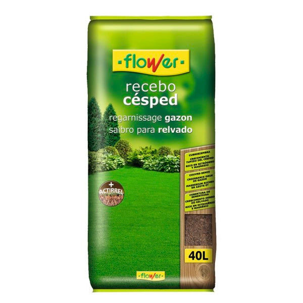 Flower Sustrato Recebo Césped 40L – Plantación, Trasplante y Cubre-Siembra con arena de sílice y compost vegetal